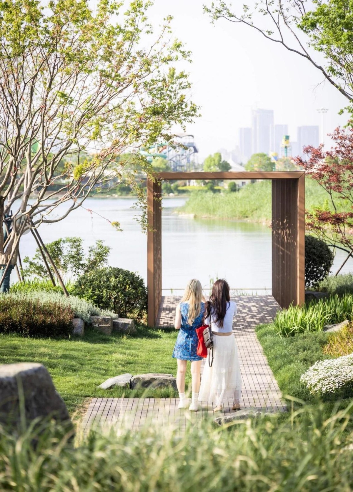 以湖滨步道、阳光草坪、无动力乐园等场境,塑造亲子互动、运动休闲、自然游赏等服务体验式景观公园,让社交融入自然,将生活向外延伸。